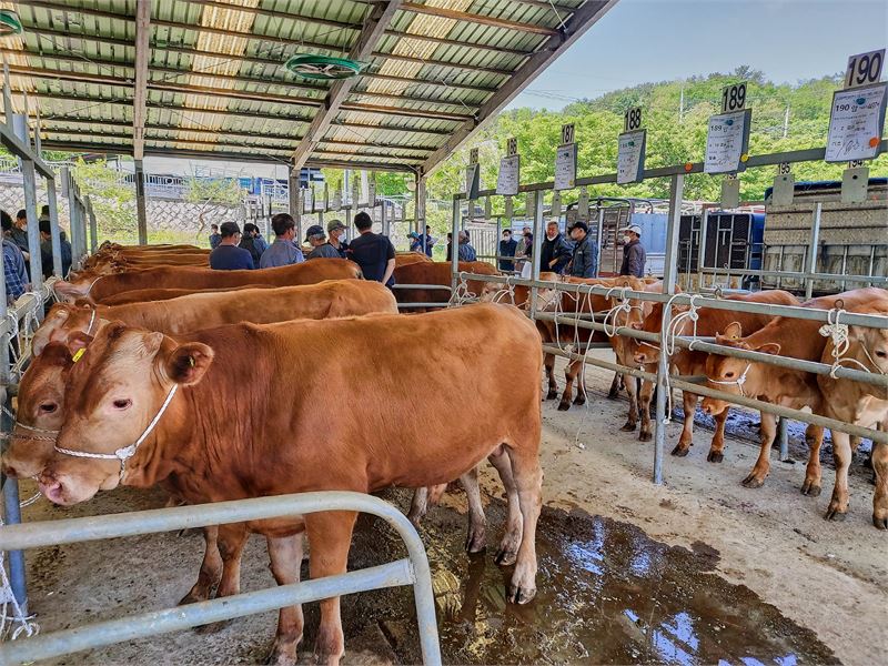 진주축협 가축시장 한우(송아지) 경매 모습. 정창현 기자