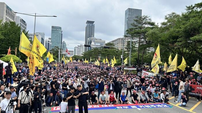 이날 한우농가 1만 2000여 명은 버스 300대와 소 반납 차량 등을 동원해 상경했다. 경남 산청·함양·거창·합천에서도 버스 11대를 동원해 300여 명이 참가했다.