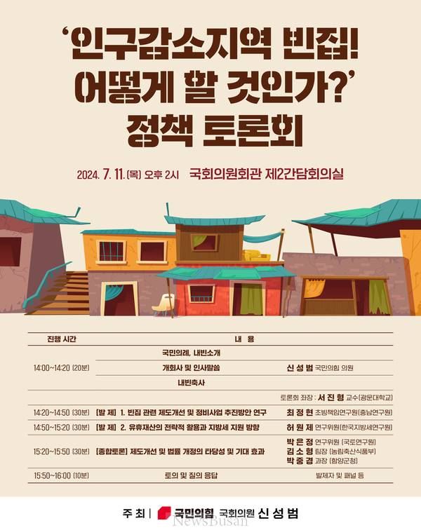 신성범(국민의힘,경남 산청·함양·거창·합천) 국회의원 주최로 11일 국회 의원회관에서 ‘인구감소지역 빈집, 어떻게 할 것인가’라는 정책 토론회가 열렸다.