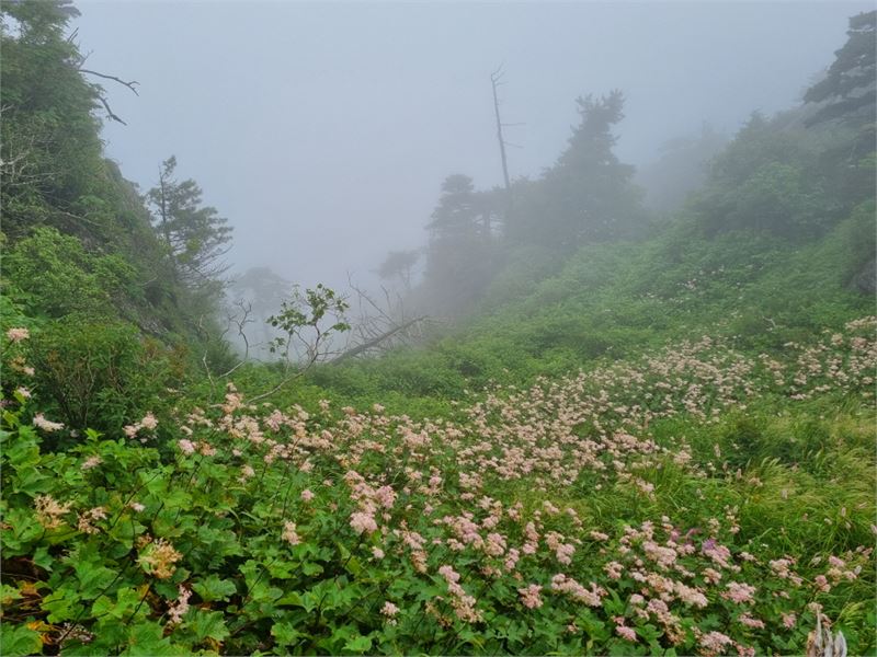 정상인 천왕봉으로 이어지는 제석봉과 통천문 인근으로 다양한 야생화가 피어나 꽃동산으로 변했습니다.