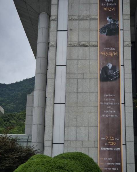 체육관 외벽에 7월의 공연 안내 현수막을 걸어놓았다.