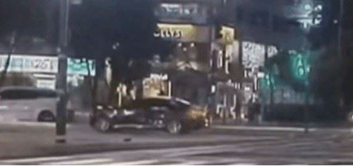 서울 시청역 근처에서 역주행 차량에 치어 9명이 사망한 사고 현장 CCTV 영상. 사고 차량이 받은 가드레일과 부서진 파편들이 늘려 있다. 종편 MBN