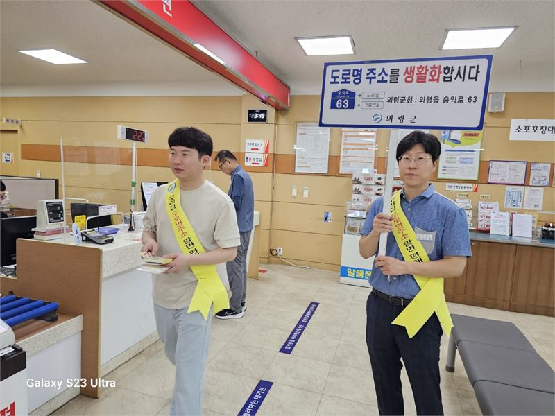 의령군 직원들이 지난 추석 연휴 기간 우체국에서 도로명주소 생활화를 위한 홍보 활동을 하고 있다. 이상 의령군