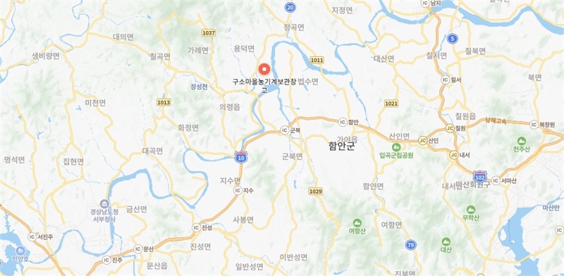 의령군 용덕면 구소마을 위치. 맨 왼쪽이 진주, 맨오른쪽은 창원이다. 네이버 지도