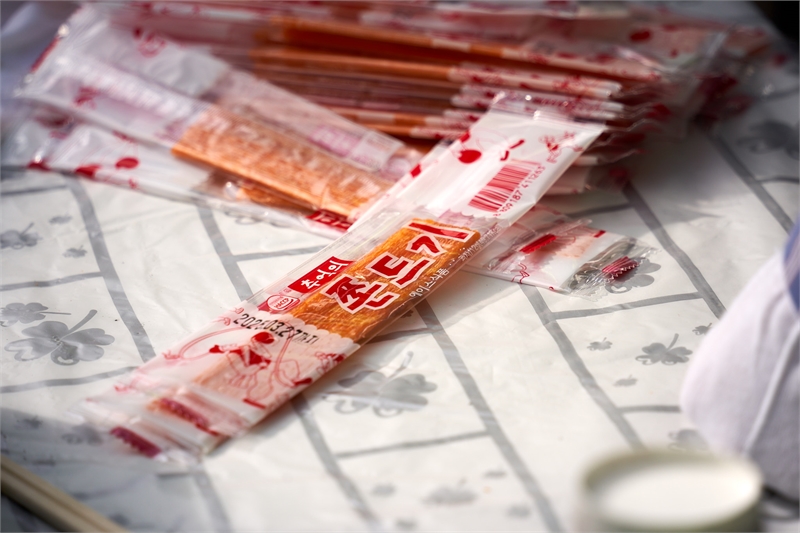 추억의 쫀드기 제품. 할아버지, 할머니 때나 지금의 손주 때나 학교 앞의 군것질거리로 오래 이어지고 있다.
