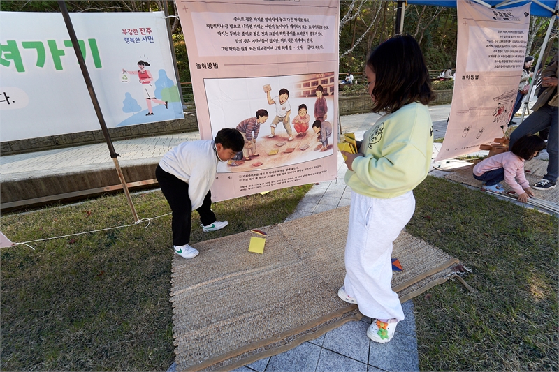 가을 햇살이 내리쬐는 이날 축제장에는 주말이어선지 방문객을 다소 붐비는 편이었다. 진행요원복을 입은 진주중·진주여중 학생들이 나와 행사를 돕고 있다.
