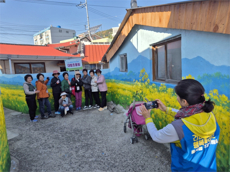 동서동건강위원회가 주최·주관 한 ‘다! 함께 걷기데이’에 참가한 대방초등팀원들이 대방마을 벽화 앞에서 참가 기념사진을 찍고 있다. 이상 사천시