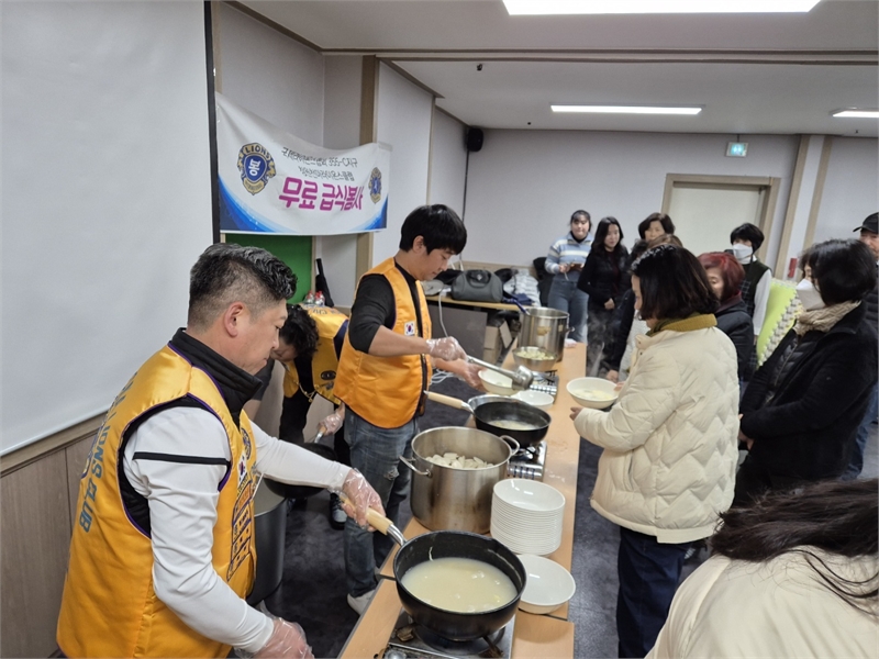 경남 창원천마라이온스클럽(국제라이온스협회 355-C지구) 회원들이 올해도 장애 단체를 찾아 무료 급식봉사를 했습니다. 올해 메뉴는 떡국이었습니다.