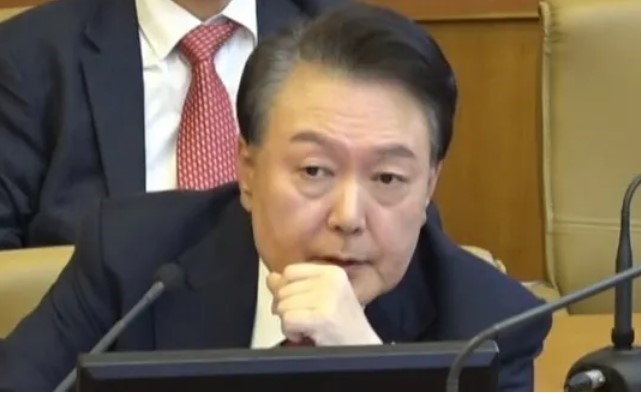윤석열 대통령이 6일 오후 서울 종로구 재동 헌법재판소에서 열린 탄핵심판 6차 변론기일에 출석해 앉아 있다. 헌재