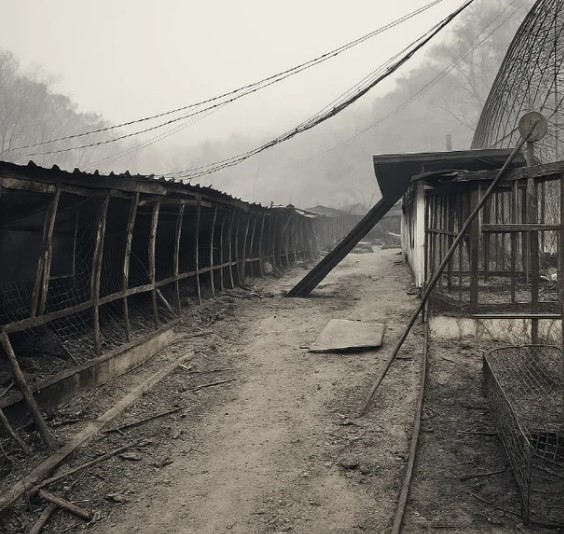 700여 마리의 개가 갇혀 있다가 산불로 거의 타 죽은 경북 안동의 개 사육장 모습. 챗GPT