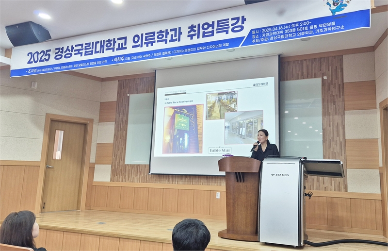 경상국립대(GNU) 자연과학대학 의류학과는 지난 16일 오후 자연과학대학 콜핑 박만영홀에서 패션산업 현장의 전문가들을 초청해 취업 특강을 했다.