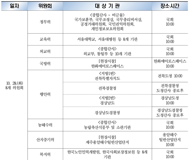 [2025 국정감사] 국회 상임위별 '오늘의 국감'(10월 28일)