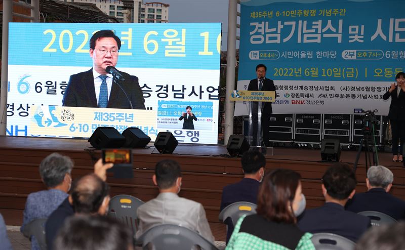 하병필 도지사 권한대행은 기념사에서 “우리 경남은 그 어느 곳보다 민주주의에 대한 열망과 역량을 키워온 자랑스러운 지역”이라며 “6월 민주항쟁의 정신을 이어받아 도민의 목소리를 더욱 경청하고, 도민의 행복을 위해 최선을 다하겠다”고 밝혔다.