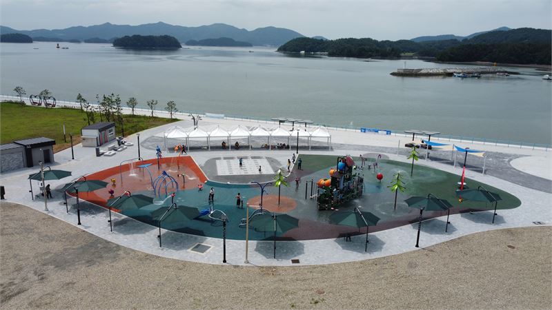 연면적 1236㎡에 바닥 분수대와 조합 놀이대 2개, 단품 놀이대 20개 등 놀이시설과 그늘막, 파라솔 12개, 탈의실, 샤워실에 안전을 위한 CCTV까지 갖췄다.