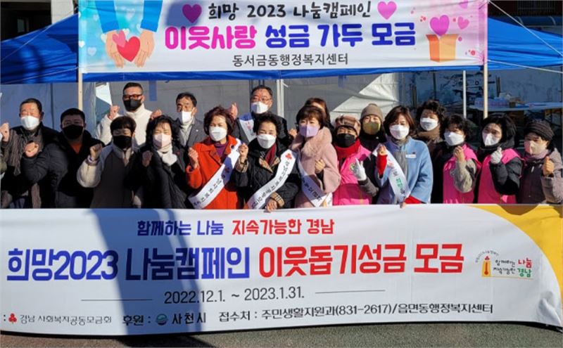 경남 사천시는 지난해 12월 1일부터 올해 1월 31일까지 진행된 '희망2023 나눔캠페인'으로 당초 목표액 대비 234%를 초과한 7억 2000여만 원의 성금을 모금했다.