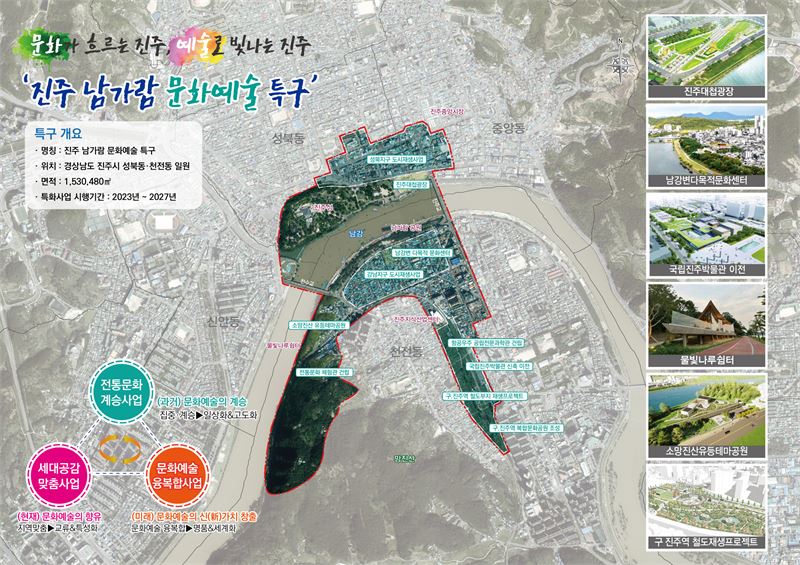 무엇보다 문화예술특구 지정은 구경만 하던 남강이 문화와 레저의 중심 공간으로 재도약 하는 계기가 될 것으로 기대된다.
