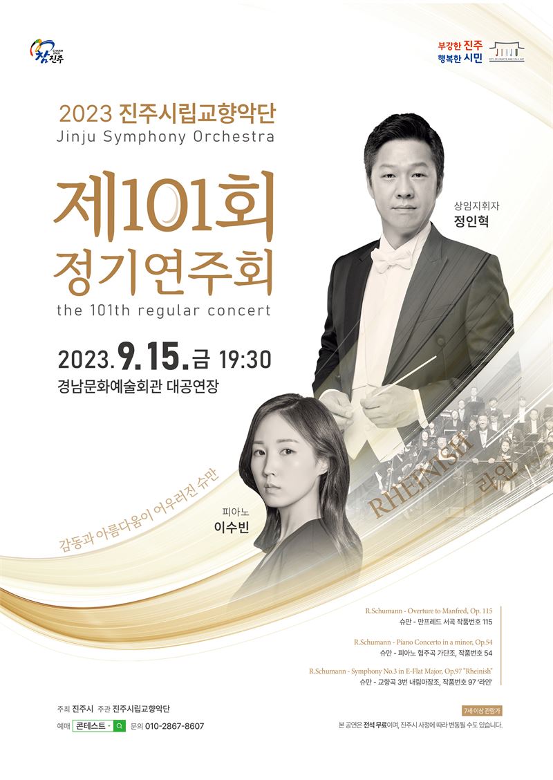 이번 공연에는 피아니스트 이수빈과 협연으로 아름다운 피아노 선율에 맞춰 로베르트 슈만의 '만프레드 서곡', '피아노협주곡 가단조', '교향곡 3번 내림마장조'가 연주된다.