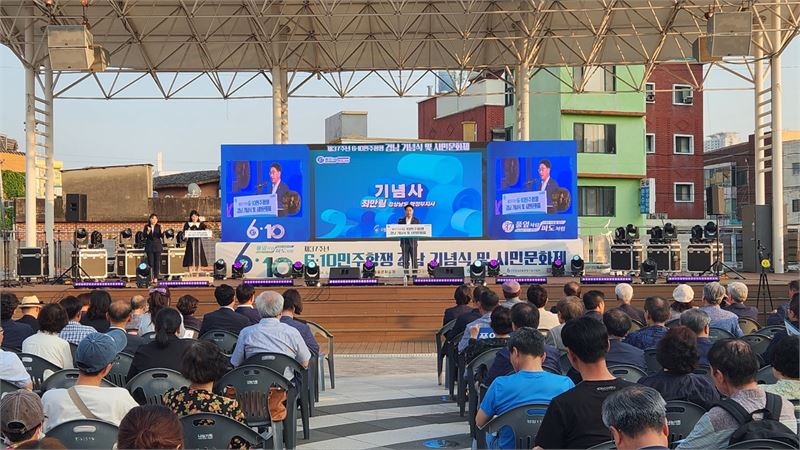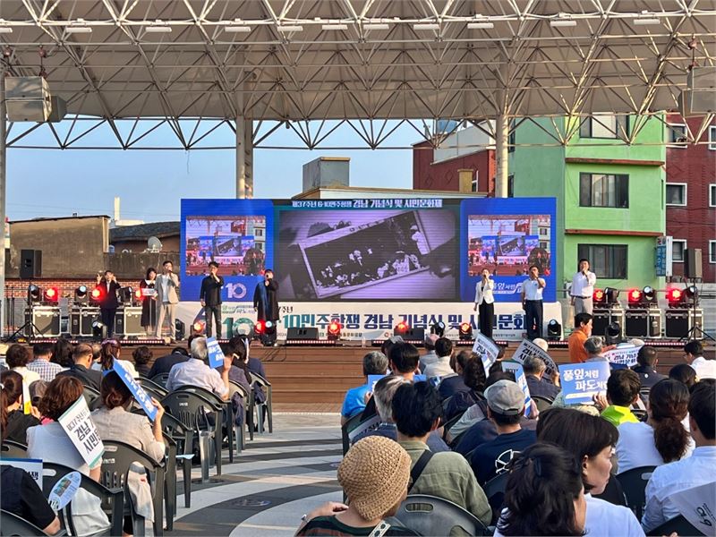 민주화운동의 정신을 기리는 '제37주년 6.10민주항쟁 경남 기념식' 10일 저녁 창원시 마산합포구 오동동 문화광장에서 열렸다.