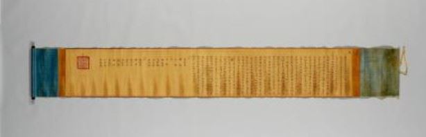 김시민 장군의 선무공신 교서는 선조가 임진왜란 3대 대첩 가운데 하나인 진주대첩을 승리로 이끈 진주목사 김시민 장군(1554~1592년)에게 내린 교서다. 규격은 세로, 가로 38.4x287.0cm(본문 37.2 x 222.5cm)이다.