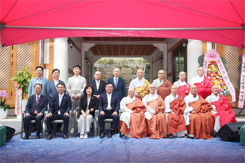 26일 경남 창원 성주사 ‘템플스테이관(해행당)’ 개관 후 기념사진을 찍고 있다. 창원시