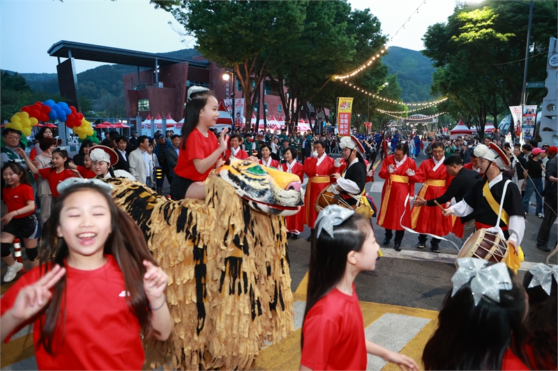 무장 의병과 관군 복장을 한 퍼레이드 참가자들과 출정 깃발들이 보무도 당당하게 전진하고 있다.