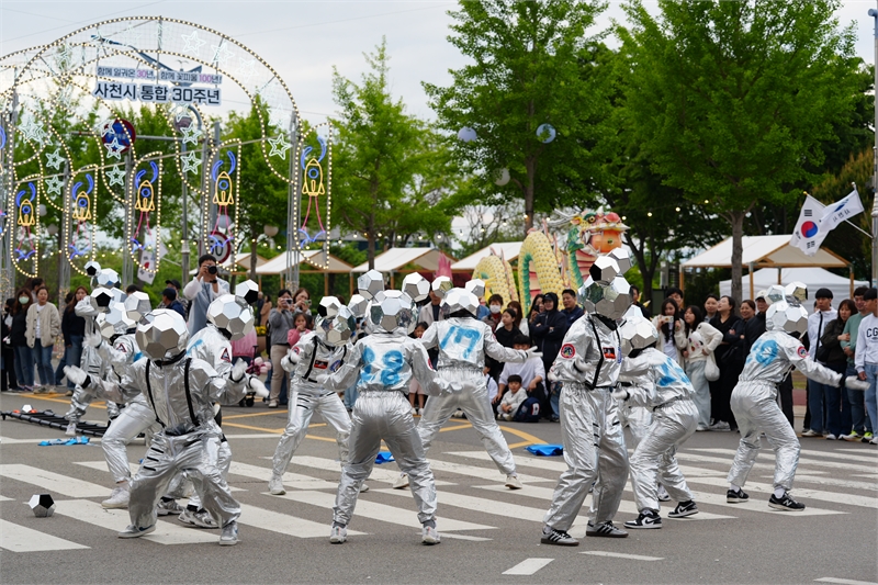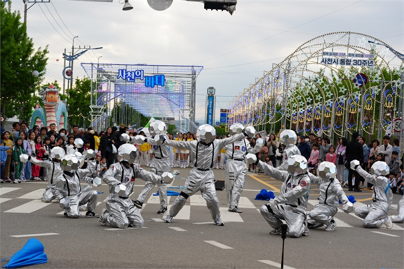 거리 퍼레이드로 펼쳐진 '미래 우주 여행' 퍼포먼스 모습