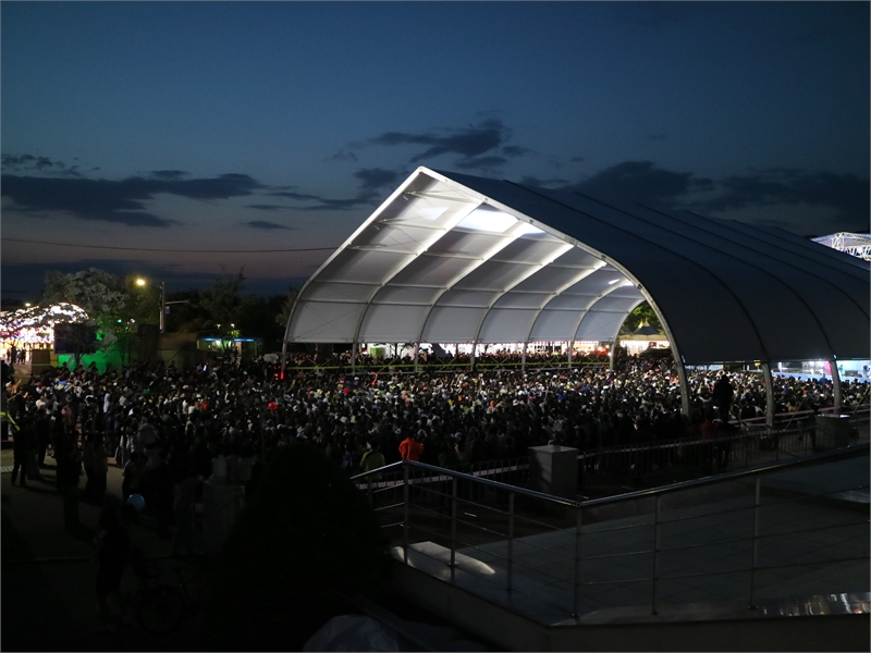사천와룡문화제 개막식 축하공연 모습. 공연장이 꽉 들어차 말 그대로 인산인해다.