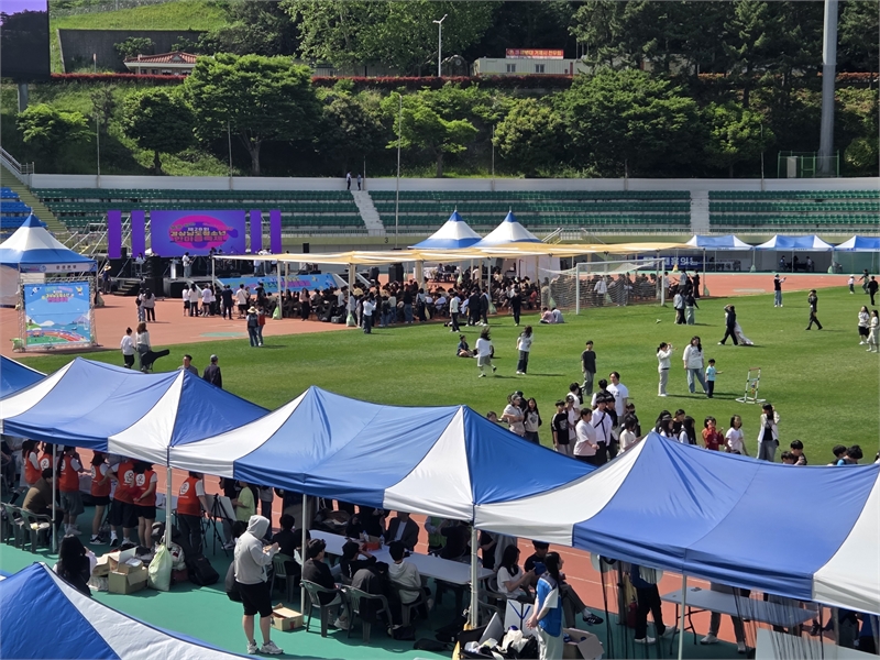 17~18일 거제종합운동장에서 열린 ‘제28회 경남도청소년한마음축제’ 모습. 6천 여명이 참여해 5월의 봄날을 즐기고 있다.