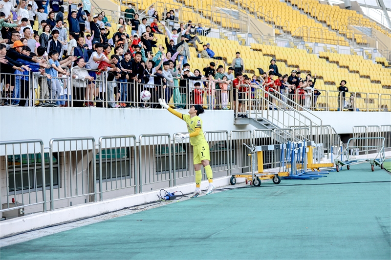 지난해 4월 7일 전북 현대 모터스와 홈경기에서 김원중 선수가 사인볼을 방문객에게 전달하고 있다. 진주시