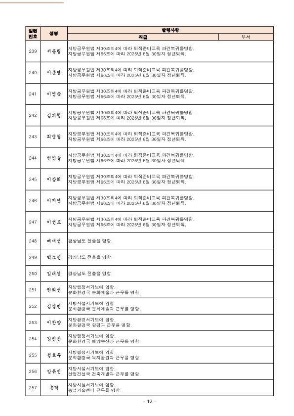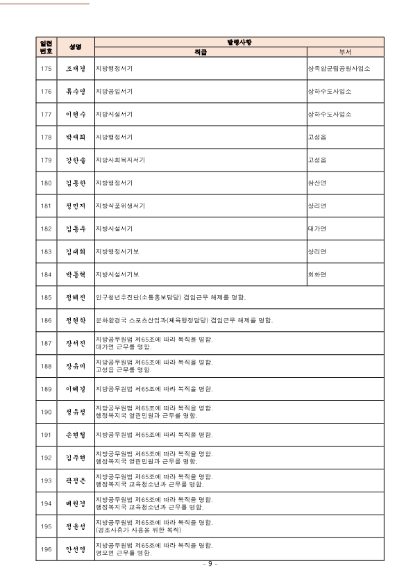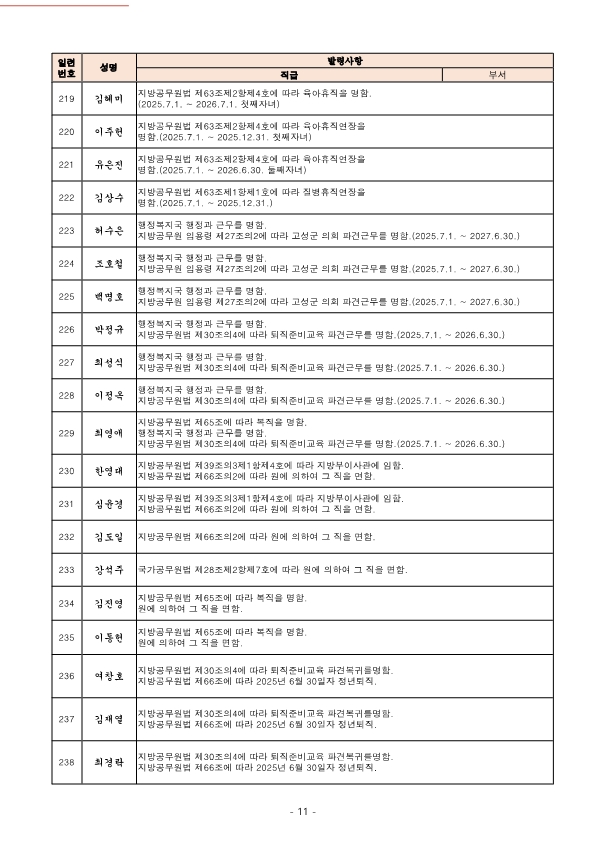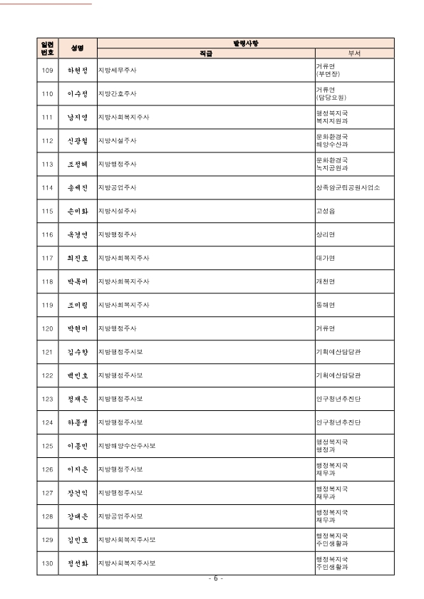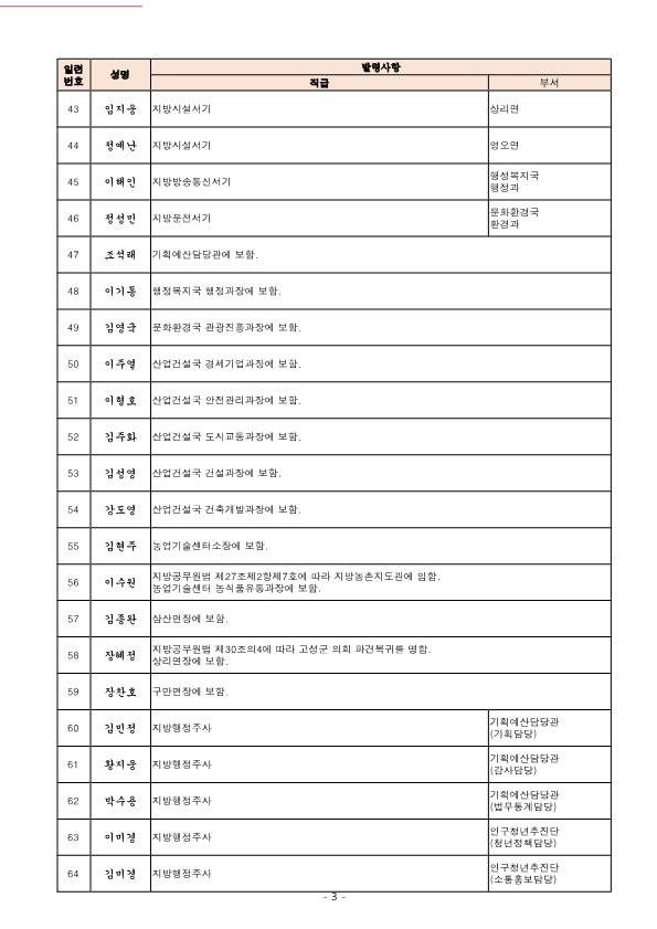 경남 고성군은 오는 7월 1일자로 승진·전보를 포함한 하반기 정기인사를 발표했다.
