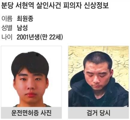 지난 2023년 8월 3일 경기 성남시 분당구 서현역에서 차량을 돌진시키고 인근 백화점 로비에서 무차별 흉기로 휘둘러 14명의 사상자를 낸 최원종(22·구속). 경찰은 7일 최종원의 신상정보를 공개했다. 경기도남부경찰청