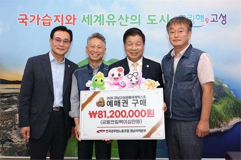 경남 고성문화관광재단(이사장 이상근)은 전국공무원노동조합 경남지역본부(본부장 강수동)가「2025경남고성공룡세계엑스포」의 성공적인 개최를 위해 8,120만 원 상당의 예매권 구매를 적극 지원했다고 밝혔다.