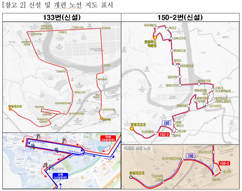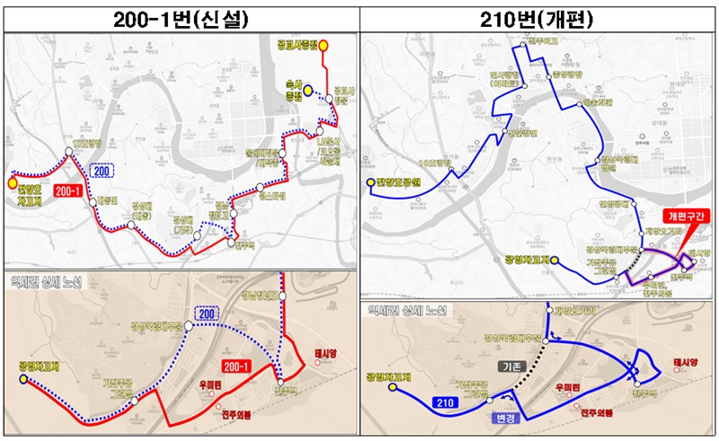 ‘210번’과 ‘134번’은 기존 노선에서 진주역세권 신규 주거단지를 통과하도록 일부 구간을 조정했다.