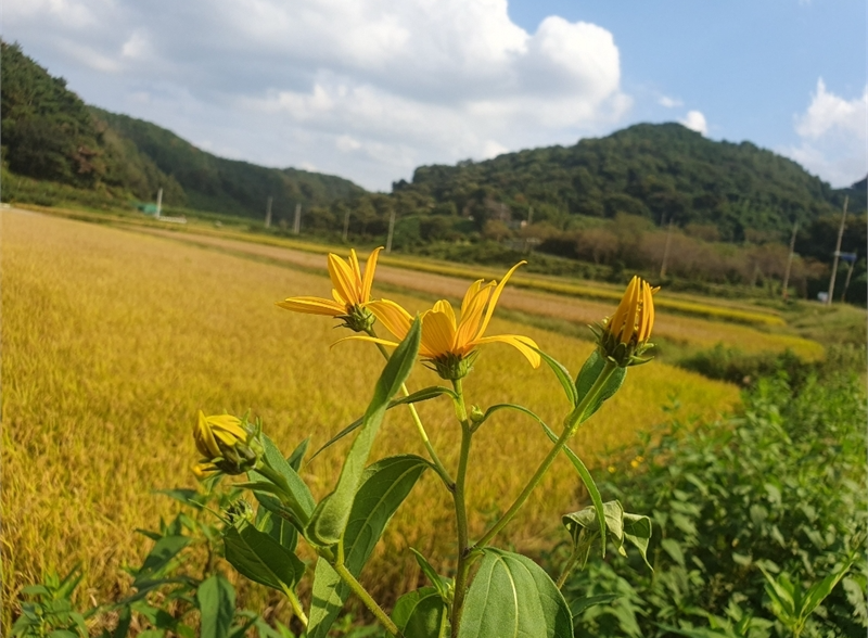 독자분들도 깊어 가는 이 가을에, 농촌 도로를 운전하거나 신작로를 걷다가, 큰 키에 투박해 보이는 잎에 하늘을 향해 노랗게 핀 꽃이 있으면 멈춰서 보기를 권합니다. 또 다른 가을 정취가 물씬 느껴질 겁니다.