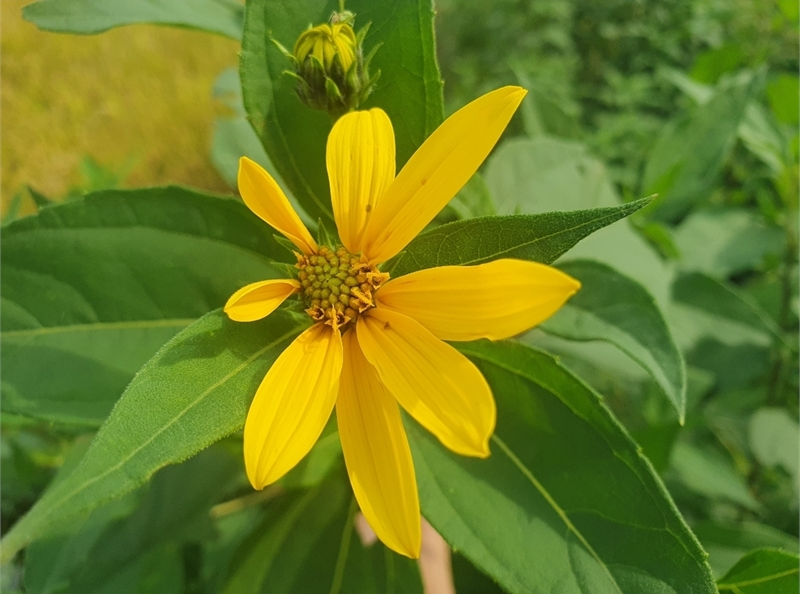 돼지감자꽃이 해바라기처럼 크거나 국화처럼 꽃이 모여 피지 않아 화려하지 않기 때문에 많은 이가 눈여겨 보지 않습니다.