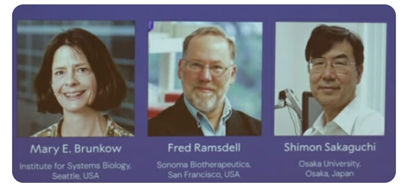 또 생리의학상은 메리 브런코(64) 미국 시스템생물학연구소 시니어프로그램 매니저, 프레드 람스델(65) 미국 소노마바이오테라퓨틱스 과학고문, 시카구치 시몬이 받았다. 이들은 '조절 T 세포'가 신체를 공격하지 못하도록 막는 사실을 밝혀내 면역 연구 발전에 기여한 점을 인정받았다.