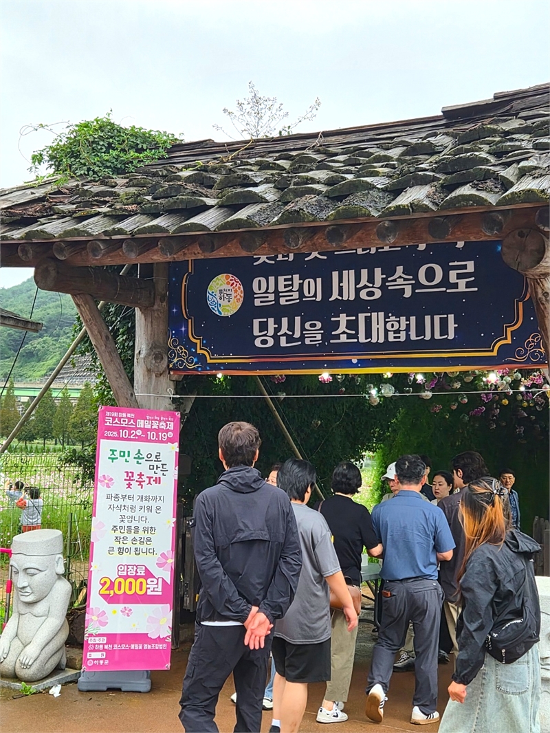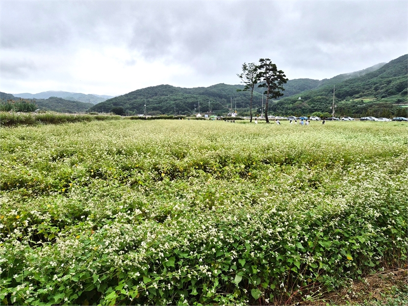 드넓은 북천 들녘 42㏊에는 코스모스꽃(36ha)과 메밀꽃(6㏊)이 만개해 방문객들의 눈을 호사시키고 있다. 특히 올해는 메밀꽃을 더 많이 심어 '소금바다'를 만끽할 수 있다. 북천역에서 걸어 5분 거리다. 올해는 주민이 만든 시민정원도 선보였다.