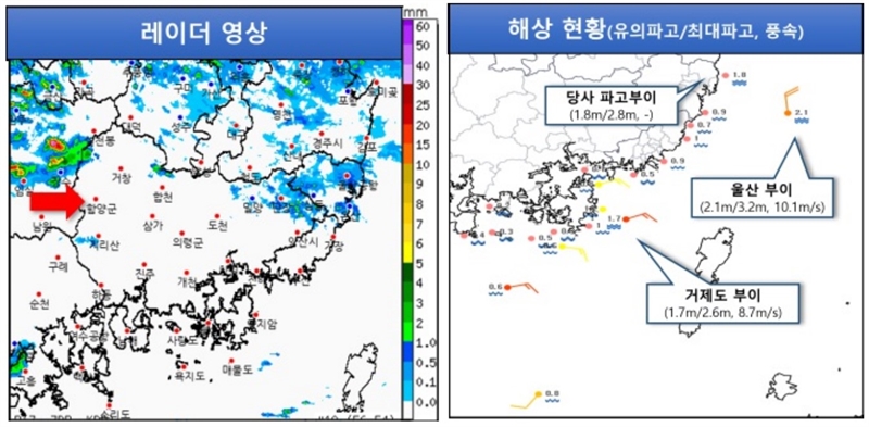 레이더 영상 및 해상 현황(13일 오후 9시)