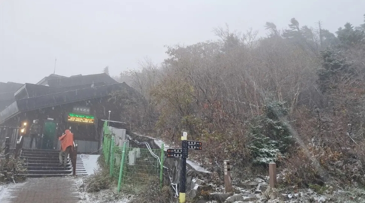 강원 설악산국립공원 고지대에 올가을 들어 첫눈이 내렸다.