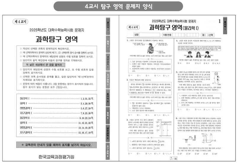 ▶4교시 탐구 영역 응시 방법 숙지해야