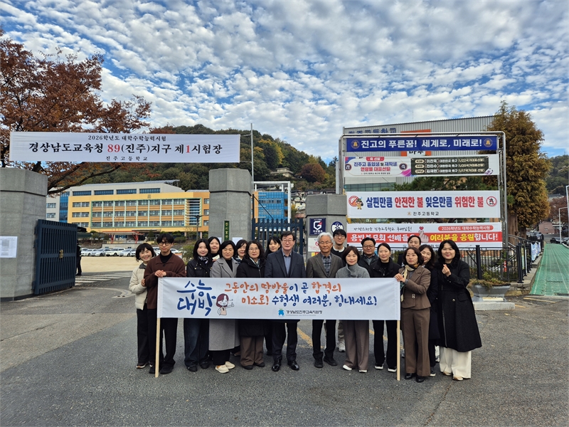 한편 김경규 교육장 등 진주교육지원청 20여 명은 이날 아침 수능 진주시험지구 제1시험장인 진주고 정문 앞에서 휴대용 손난로를 건네며 수험생을 응원했다.