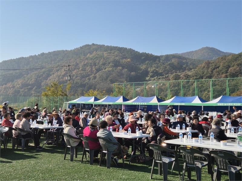 고려현종대왕문화제에 참석한 주민들이 음식을 나눠 먹고 있다. 이상 사천시