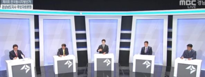 제8회 전국동시지방선거(2022년 6월 1일)를 앞두고 5월 23일 MBC경남에서 진행된 TV토론회. 경남도지사 후보들이 공공의료 관련 토론을 하고 있다 . MBC경남 유튜브 캡처