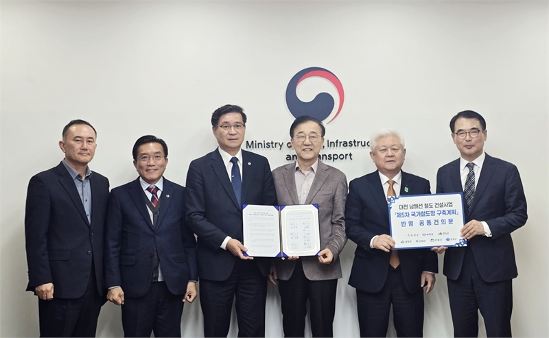 전국 7개 군의 단체장이 25일 서울 정동 국토발전전시관에서 김윤덕 국토교통부 장관을 만나 ‘대전~남해선 철도 건설 사업’을 제5차 국가철도망 구축계획(2026~2035년)에 반영해 줄 것을 요청했다.
