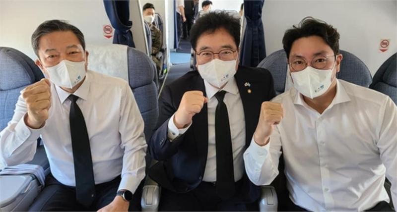 배우 조진웅이 황기철 국가보훈처장, 우원식 더불어민주당 의원과 함께 찍은 사진. 우 의원 페이스북