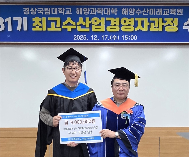 한편 이날 수료생들은 경상국립대 해양과학대학에 발전기금 900만 원을 지정 기탁하며 대학의 발전을 위한 따뜻한 마음을 전했다.