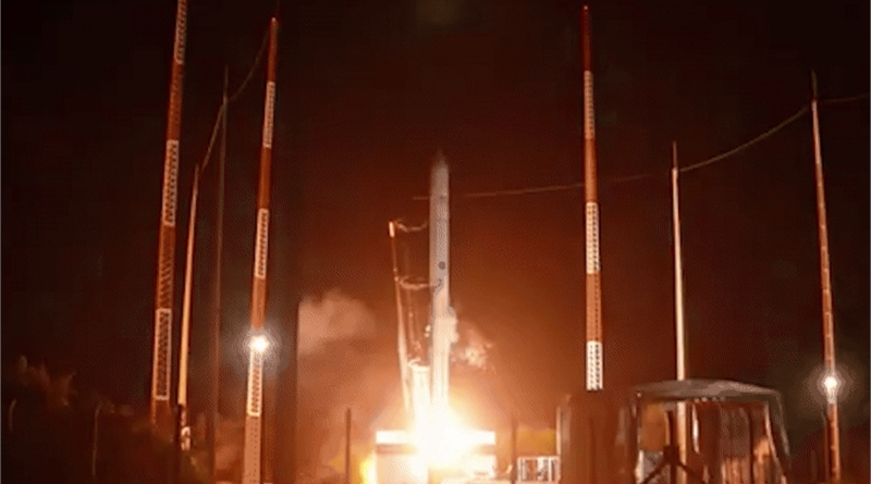 국내 우주발사체 기업 이노스페이스의 첫 상업 우주발사체 ‘한빛-나노’가 23일 오전 우주를 향해 발사된 뒤 붉은 불빛을 뿜으며 하늘로 솟구치고 있다. 이노스페이스 유튜브