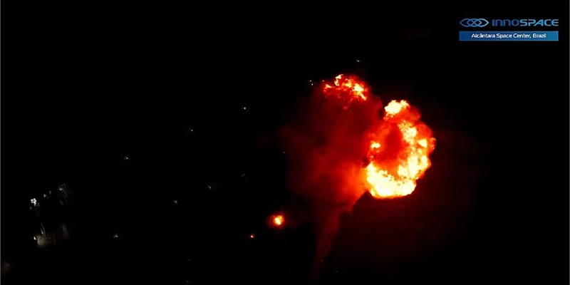 이노스페이스의 상업 우주로켓 '한빛 나노'가 23일 오전(한국 시각) 브라질 알칸타라 우주센터에서 발사된 뒤 떨어져 폭발하고 있다. 이노스페이스 유튜브