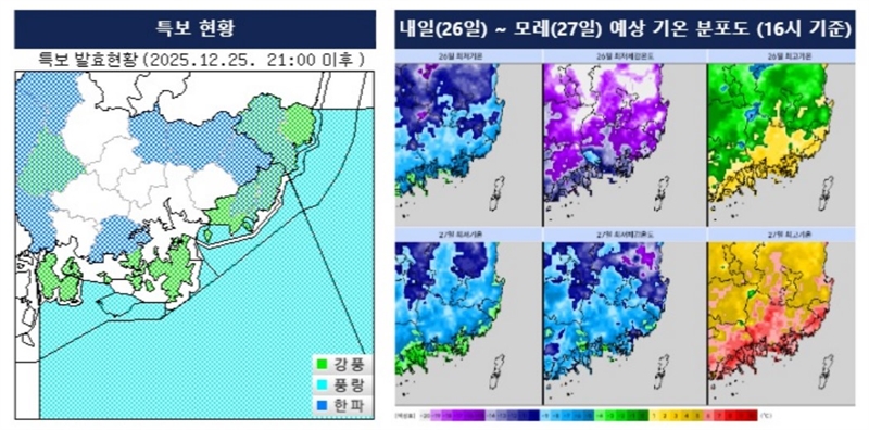 기상청은 25일 오후 9시를 기해 하동·산청·함양·거창·고성·창녕·밀양·양산 등 8개 시군에 한파주의보를 발령한다고 밝혔다.