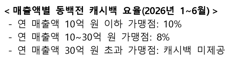 특히 내년 1~ 6월 캐시백 요율을 10%로 적용하되, 연 매출액별로 캐시백 요율을 차등 적용해 소규모 소상공인에게는 추가적인 지원을 한다. 이는 지난 2023년 7월부터 시행된 ‘매출액별 차등 정책’을 지속 적용하는 것이다.